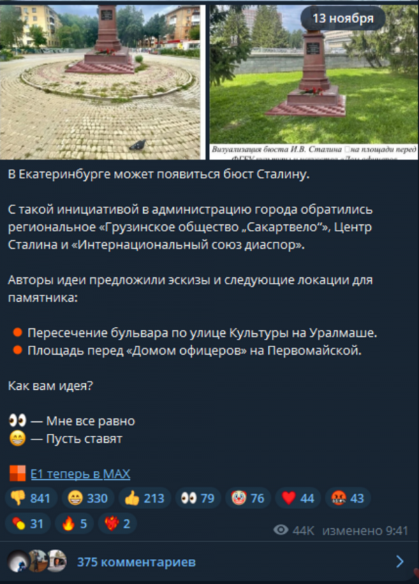 Добавим, что читатели самого популярного екатеринбургского издания отнеслись к идее установки памятника, мягко говоря, прохладно.