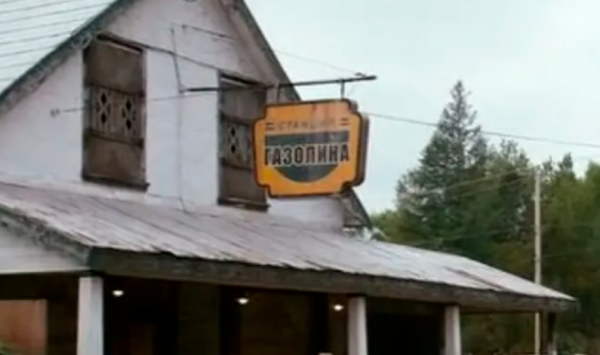 В фильме "Напряги извилины" заправка называется "Газолина". В США заправки обозначаются словом "Gasoline" или просто "Gas". И, видимо, они решили, что для перевода достаточно просто написать то же самое название, но только русскими буквами.