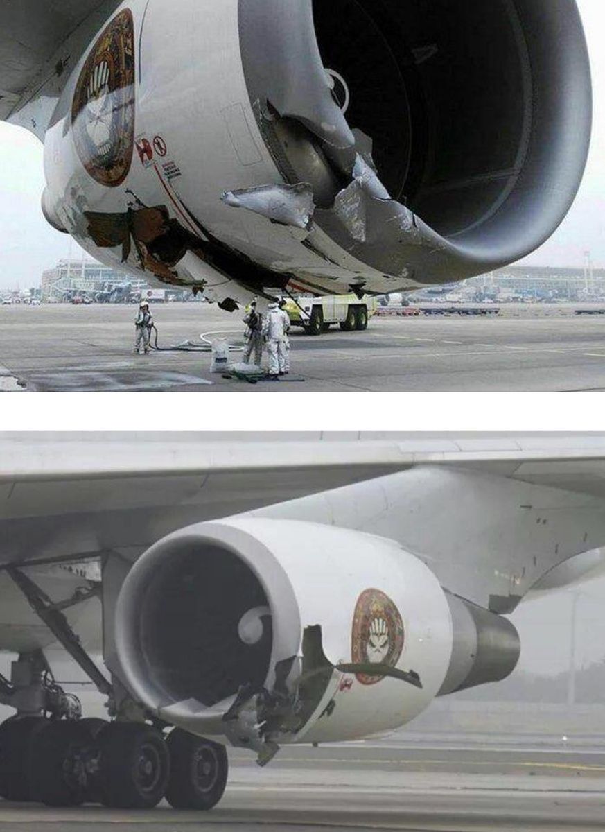 Это результат взрыва одного из двигателей. Мастерству пилотов можно посвящать стихи и песни! Ведь не все способны действовать хладнокровно в подобных обстоятельствах. Впрочем, для пассажиров полет стал настоящим испытанием.
