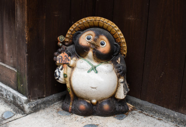 Но почему они большие не у кабана или лиса? Потому что в стародавние времени мастерам по металлу в префектуре Каназава требовалась кожа тануки, чтобы ковать золото. Его клали между кусками кожи тануки, а ее невероятная прочность позволяла растягивать золото до очень тонких пластин, почти что листов.