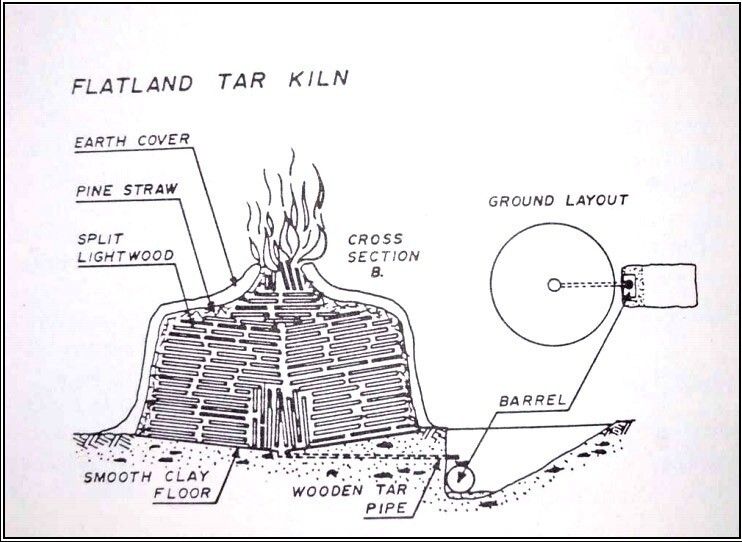 В колониальную эпоху Северная Каролина была главным производителем дёгтя для британского Королевского флота, которому требовалось оснащать и содержать огромное количество кораблей. Дёготь применяли для пропитки канатов, чтобы сделать их водонепроницаемыми. Им же смолили корпуса судов. Скипидар, получаемый из той же сосновой смолы, шёл на изготовление масляных красок для кораблей и зданий.К 1770-м годам Северная Каролина производила 70% всего экспортируемого дёгтя и 50% скипидара среди колоний. Это в итоге подарило штату прозвище "Штат дегтярников", отсылающее к вязкой смоле, что налипала на каблуки сапог рабочих.