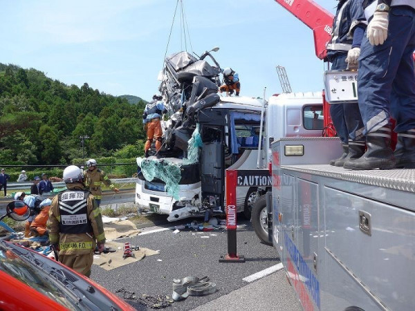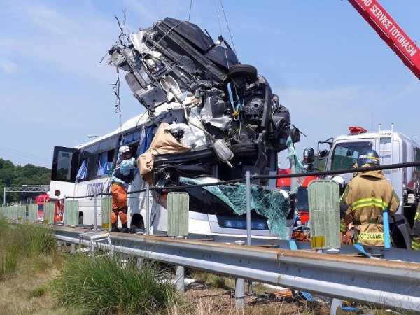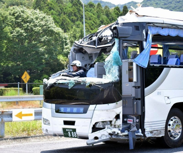 Сегодня как-то необычно мало толковых роликов в сети, по этому решил опубликовать старую аварию, произошедшую ещё в 2017 году в Японии на скоростной автомагистрали "Томей" в префектуре Айти. Водитель легкового автомобиля, потеряв управление, перелетел через разделительный отбойник и влетел в автобус полный людей. 62-летний водитель легковушки погиб, 45 человек в автобусе получили ранения и переломы. Два ракурса.
