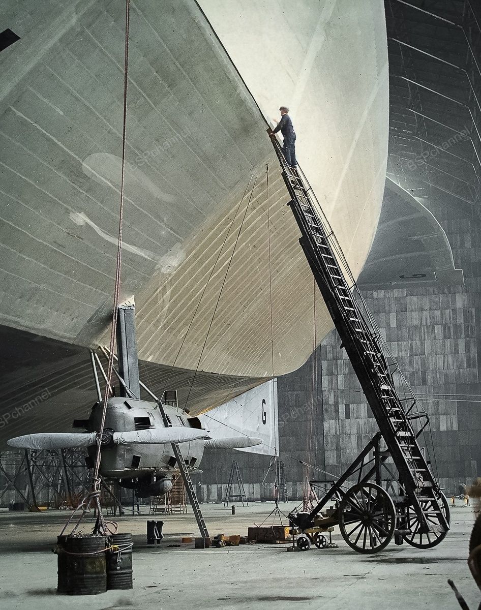 Британский дирижабль R100 близок к завершению на авиабазе Королевской военно-морской авиационной службы близ Хаудена в Йоркшире, ноябрь 1929 года.