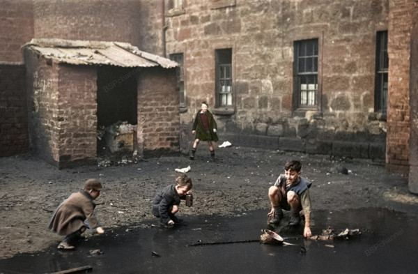 Дети играют во дворе "Горбалс", печально известного трущобного района Глазго. Шотландия, январь 1948 года.