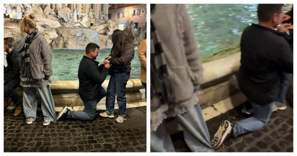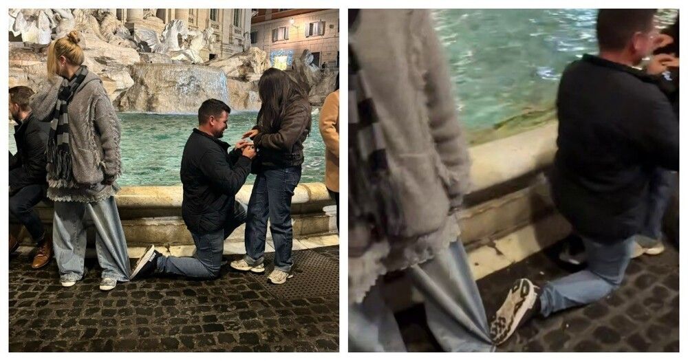 В Риме туристка стала невольной участницей чужого предложения руки и сердца. Мужчина, встав на одно колено, нечаянно наступил ей на джинсы и буквально "приковал" к месту.