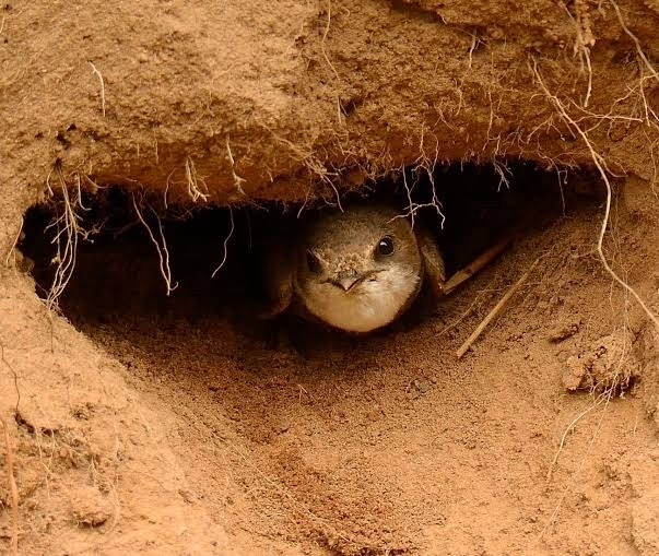 Эта птица не строит гнёзд. Она выводит потомство под землёй. Знакомьтесь, ласточка-береговушка. Как понятно из названия, селится она на берегах рек.