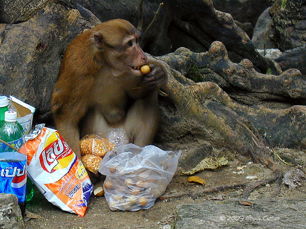 Городские обезьяны - это частое явление для населённых пунктов Южной Азии, тропической Африки и даже Гибралтара. И везде, где они появляются, животные используют свой природный интеллект на полную. Сначала они робко обживают окраины. Потом, чуть привыкнув, заходят всё дальше и становятся всё наглее. Они таскают плоды с декоративных растений, роются в мусорных баках и наконец, переходят к открытому воровству. Но что самое неприятное - они теряют страх перед человеком.