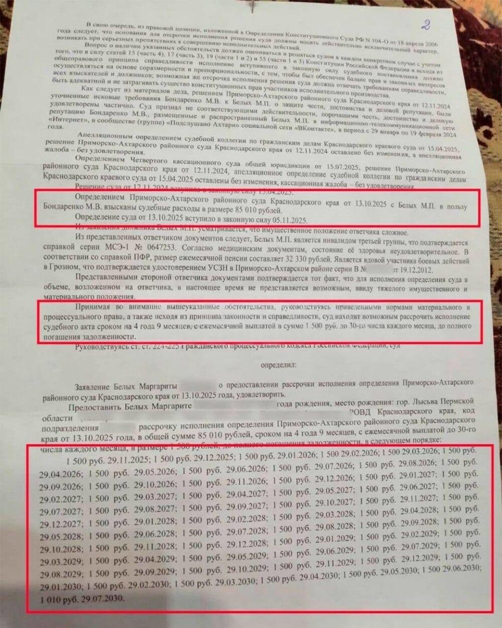 В Краснодарском крае 80-летняя пенсионерка Маргарита Белых оказалась на грани долговой ямы из-за судебного дела, инициированного местным чиновником. Все началось с короткого комментария в соцсетях, где женщина выразила сомнение в целевом использовании бюджетных средств, написав, что чиновник "врет как дышит". Это заявление стало поводом для главы Приморско-Ахтарского округа Максима Бондаренко подать на пенсионерку в суд за оскорбление.