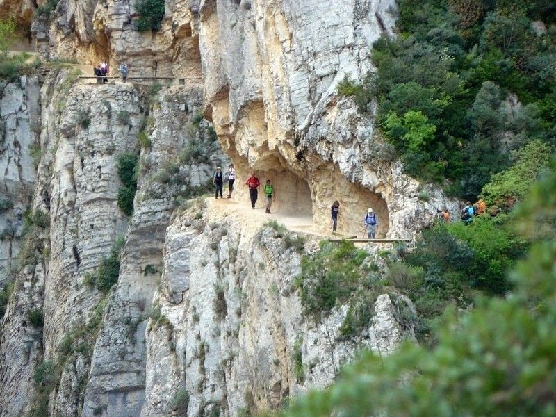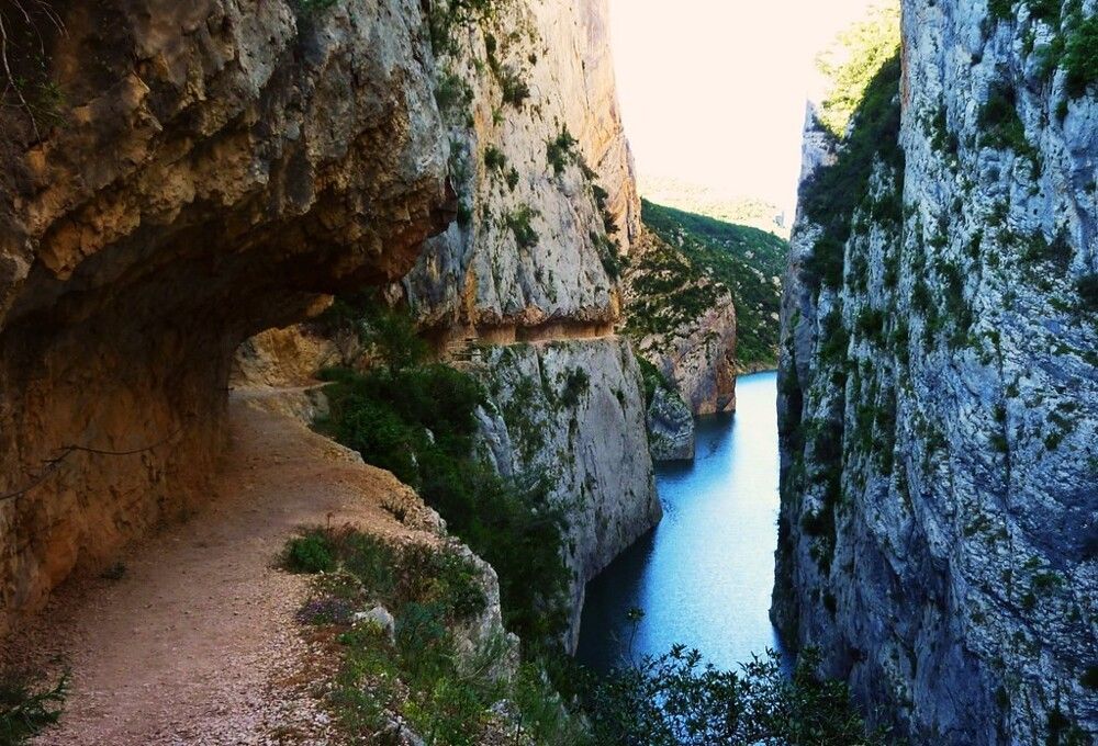 Жемчужиной этих мест стало ущелье Конгост-де-Монт-Ребей. Это глубокий каньон, врезавшийся в скальный массив. Его вертикальные стены обрываются вниз на сотни метров. Для самых смелых путешественников вдоль этих стен проложены узкие пешеходные и даже велосипедные тропы, вырубленные прямо в камне. Они дарят головокружительные виды и позволяют заглянуть в самое сердце ущелья.