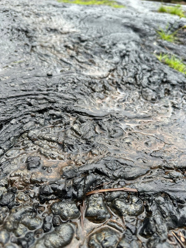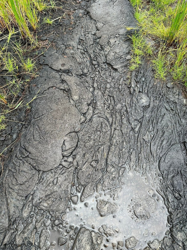 В эту липкую массу навеки вмурованы камни, обломки деревьев и прочий мусор, которые, обрастая новыми слоями асфальта, превращаются в причудливые импровизированные скульптуры и в немые предостережения об истинной опасности этого места.