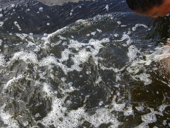 Впадина накапливает и воду, и поднимающуюся из недр земли жидкую смолу. В результате получается сюрреалистичная смесь. В одних местах она текучая, как обычная вода, в других - твёрдая, как камень.