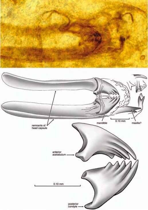 Самым древним из обнаруженных насекомых является окаменелость Rhyniognatha hirsti, жившего примерно 410 миллионов лет назад на территории современной Шотландии. Это на 30 миллионов лет старше любого другого известного ископаемого насекомого.Образец был впервые описан в 1926 году австралийским энтомологом Робином Джоном Тиллиардом. Сочтя находку ничем не примечательной, он отправил её в запасники Лондонского музея естественной истории. Там она пролежала около 80 лет, пока энтомологи Дэвид А. Гримальди и Майкл С. Энгел не изучили окаменелость заново с помощью современных микроскопов. Они обнаружили классические черты насекомого и опубликовали результаты в журнале Nature 12 февраля 2004 года. Хотя крылья не сохранились, треугольная структура его челюстей сходна с таковой у крылатых насекомых. Это говорит о том, что полёт насекомых мог возникнуть на 80 миллионов лет раньше, чем считалось прежде. Окаменелость по-прежнему хранится в Музее естественной истории в Лондоне.До этого открытия старейшими известными ископаемыми насекомыми считалась пара бескрылых насекомых возрастом 379 миллионов лет, найденных в штате Нью-Йорк и в Канаде.