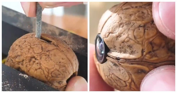 Необычный способ: парень продемонстрировал, как встроить мини-камеру прямо в грецкий орех. Маленькое устройство с большой функциональностью!