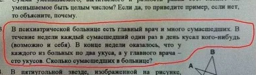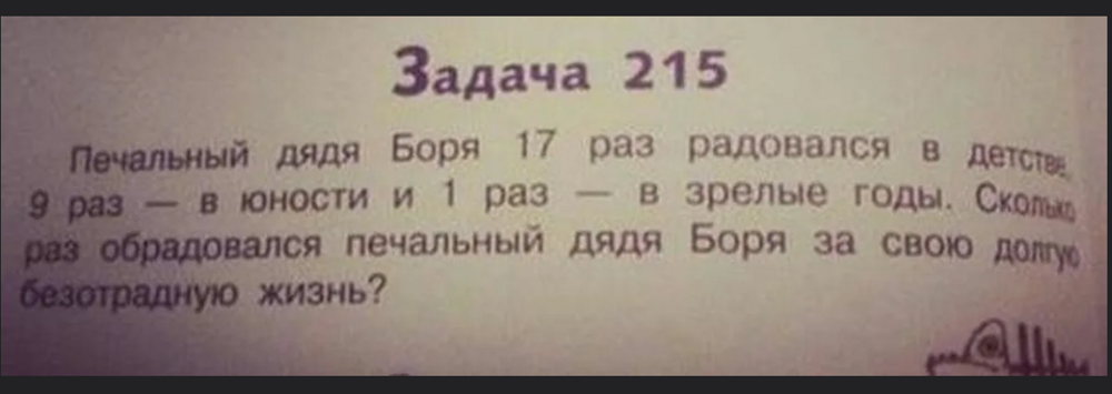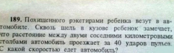 Но я и подумать не мог, что спустя чуть более чем 20 лет я увижу в школьных учебниках настолько абсурдные задачки, от которых становится просто смешно, а порой и страшно. Предлагаю и вам посмотреть на некоторые абсурдные и нелепые задачки по математике из школьных учебников.