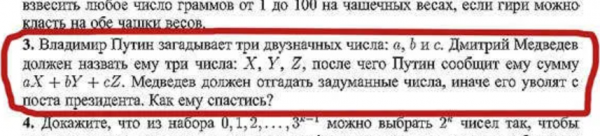 Да, политика тоже проникла в математику. Видимо, Медведев так и не смог решить задачку, так как с 2012 года он больше не президент.