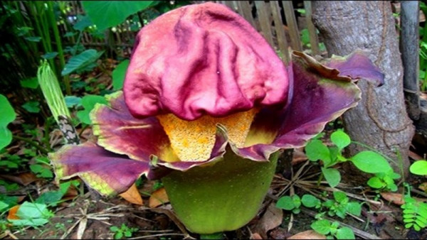 Аморфофаллус пионолистный (лат. Amorphophallus paeoniifolius) известен как слоновий ямс. Это растение знаменито запахом гниющей плоти. Однако, в отличие от своего родича трупного цветка, считается деликатесом во многих регионах Юго-Восточной Азии, где его выращивают как культуру.Помимо кулинарного применения, ценится и в медицине. В традиционных практиках её используют для лечения различных недугов, включая астму, артрит и боли в животе.