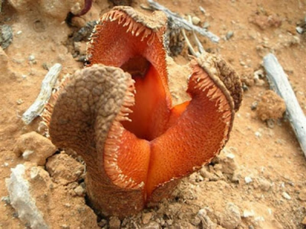 Это странное на вид растение ведёт подземный образ жизни, и лишь его цветок прорывается на поверхность. Его причудливая форма и запах, напоминающий фекалии, приспособлены для привлечения навозных жуков, которые и опыляют его. Этот паразит удивляет не только обликом, но и способом существования: не имея собственного хлорофилла, он присасывается к корням растений-хозяев, высасывая из них воду и питательные вещества.