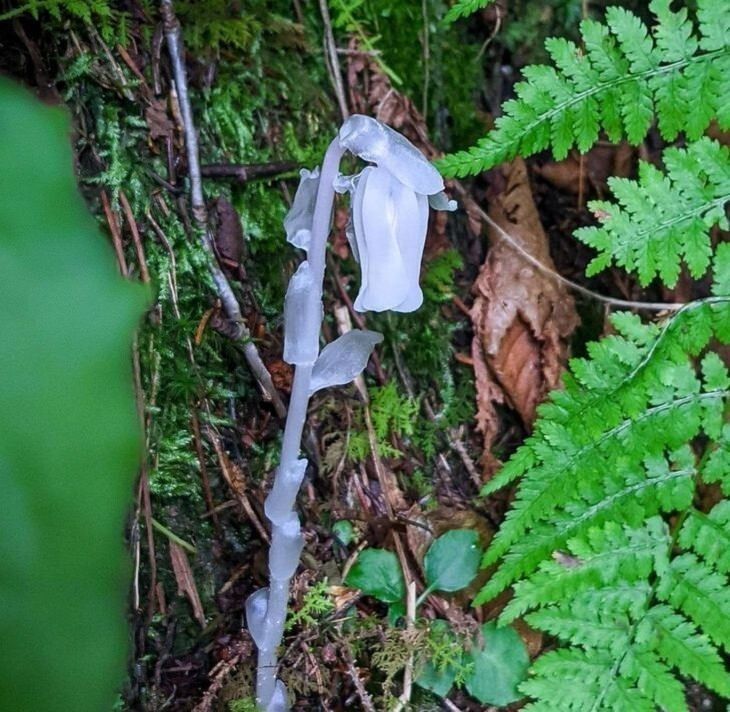 Подъельник одноцветковый известен также как растение-призрак. Это микогетеротроф. Оно не фотосинтезирует, а получает питательные вещества, паразитируя на грибах, которые, в свою очередь, образуют микоризу с корнями деревьев.