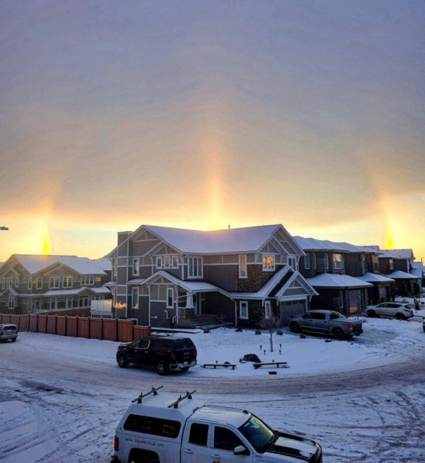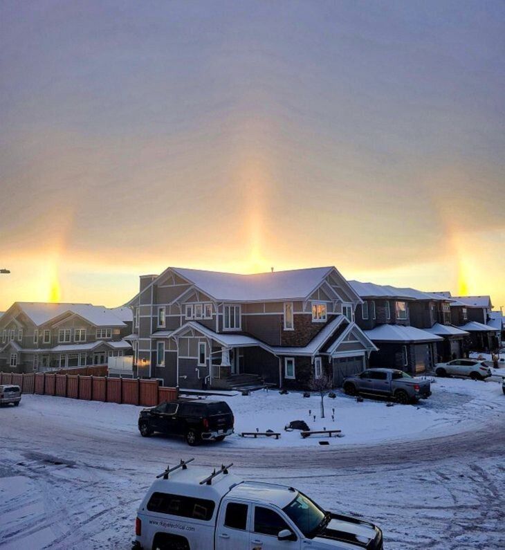 Это цветные пятна света, которые возникают из-за преломления солнечных лучей в ледяных кристаллах атмосферы. Представляют собой разновидность гало, атмосферного оптического явления. Шанс увидеть его выше в морозную погоду при наличии перистых облаков.