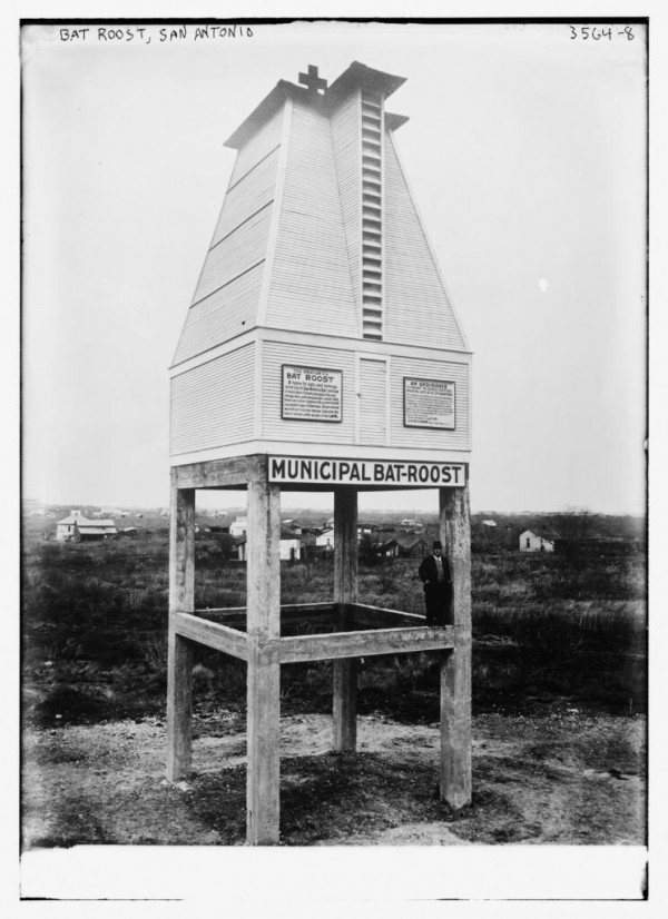 Сначала доктор Кэмпбелл пытался создать для мышей домики-гнёзда из ящиков разных форм и размеров. После нескольких лет неудач он понял, что в отличие от птиц, летучим мышам нужно нечто грандиозное. Вложив 500 долларов собственных средств, в 1907 году он построил первую башню высотой в девять метров на опытной ферме близ Сан-Антонио. Внутри он разместил наклонные полки для ночёвки и развесил марлю, пропитанную мышиными экскрементами, чтобы создать привычный запах. Для дополнительного привлечения ночных гостей он даже оставил внутри ломтики ветчины.Несмотря на все усилия, ни одна мышь не соблазнилась на приманку. Три года Кэмпбелл вкладывал свои сбережения в усовершенствование башни, но тщетно. В отчаянии он поймал около 500 летучих мышей в другом месте и запер их в башне, надеясь, что их писк привлечёт сородичей. Эта затея тоже провалилась. В ярости Кэмпбелл разрушил башню, изгнав сотни воробьёв, которые облюбовали её вместо мышей.