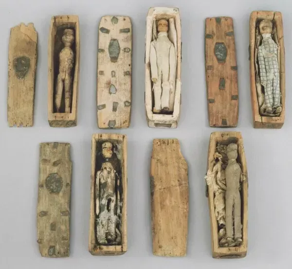 В Национальном музее Шотландии в Эдинбурге хранится набор из восьми миниатюрных деревянных гробов, отделанных железом. В каждом покоится маленькая фигурка с нарисованным лицом, одетая в аккуратно сшитую и приклеенную одежду.