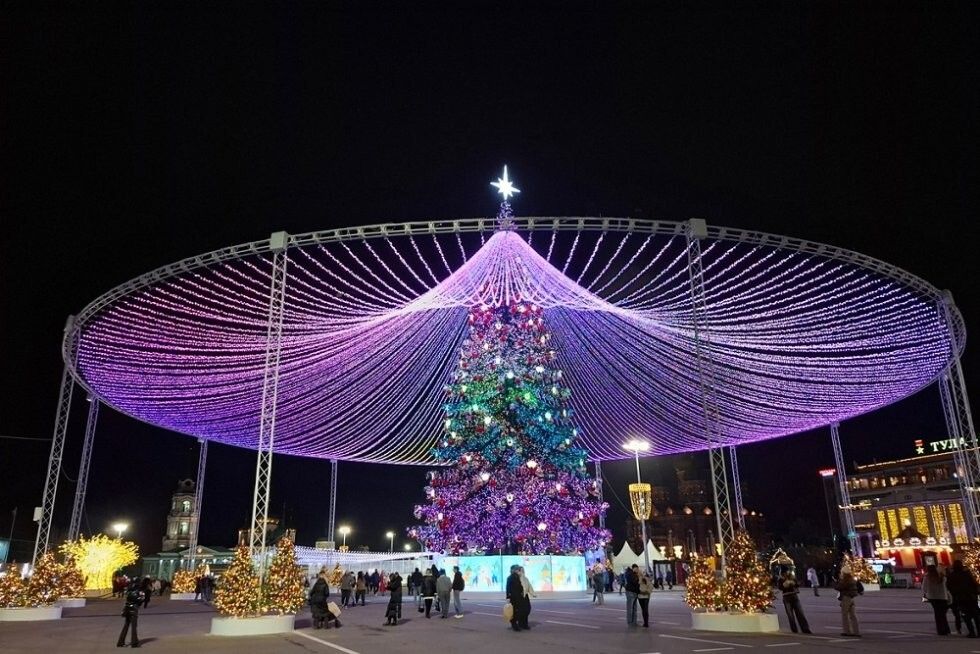Ёлка в Туле попала в Книгу рекордов России как самая высокая стволовая искусственная новогодняя ель. Её высота составляет 32 метра.