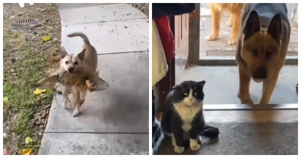 В США владельцы собак делятся видео, на которых их питомцы знакомятся с новыми друзьями: медвежонком, мышкой и даже змеёй. По словам хозяев, животные встречают каждого спокойно и с любопытством, для них не существует понятий "страшно" или "опасно".