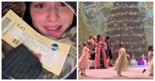 Девушка рассказала, как во время прогулки по Москве к ней подошёл мужчина и неожиданно подарил билет на балет "Щелкунчик". Она посетила Кремлёвский дворец, увидела старинную постановку с костюмами и хореографией 1892 года и была тронута мастерством артистов и атмосферой спектакля.