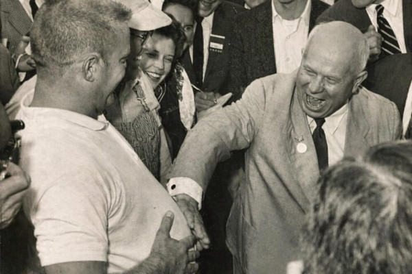На фото Хрущёв с Росуэллом Гарстом, фермером из Айовы, сколотившем состояние на выращивании кукурузы. Якобы, похлопав фермера по пузу, Хрущёв сказал: "Вот это я понимаю, настоящий американец!"Гарст впервые посетил СССР в 1955 году, где и познакомился с Хрущёвым. Никита Сергеевич заглянул к Гарсту на ферму во время своей поездки по США. На кукурузном поле у двух друзей состоялся спор о том, кому бог помогает больше. Христианин Гарст уверял, что бог на стороне США, а атеист Хрущёв спорил, что бог помогает СССР. В конце концов, Хрущёв заключил: "Бог на стороне разума".Говорят, что во время беседы с Хрущёвым Гарст так разозлился на надоедливых журналистов, что кидал в них початками и даже навозом и едва не спустил на папарацци быка.Переводчик Хрущёва Виктор Суходрев рассказывал, что разговор Гарста и Хрущёва был разговором человека, очень хорошо разбирающегося в кукурузе, и человка, думающего, что он очень хорошо разбирается в кукурузе.
