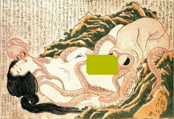 Короче говоря, уникальная в своем роде вещь - сюнга. Их рисовали известные художники укиё-э, которые писали портреты гейш, актеров кабуки и пейзажи. Даже сам Хокусай (который рисовал Фудзи) пробовал себя в сюнга, он нарисовал скандальный "Сон жены рыбака".
