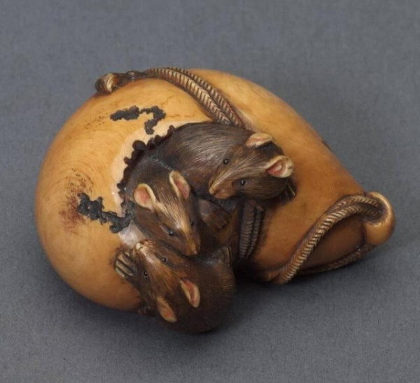 В японской и китайской культуре крыса - первый знак 12-летнего цикла восточного зодиака, символизирующий богатство, находчивость и изобилие. Подобные миниатюрные нэцкэ или резные украшения могли служить как амулетом на удачу, так и демонстрацией высочайшего мастерства резчика.