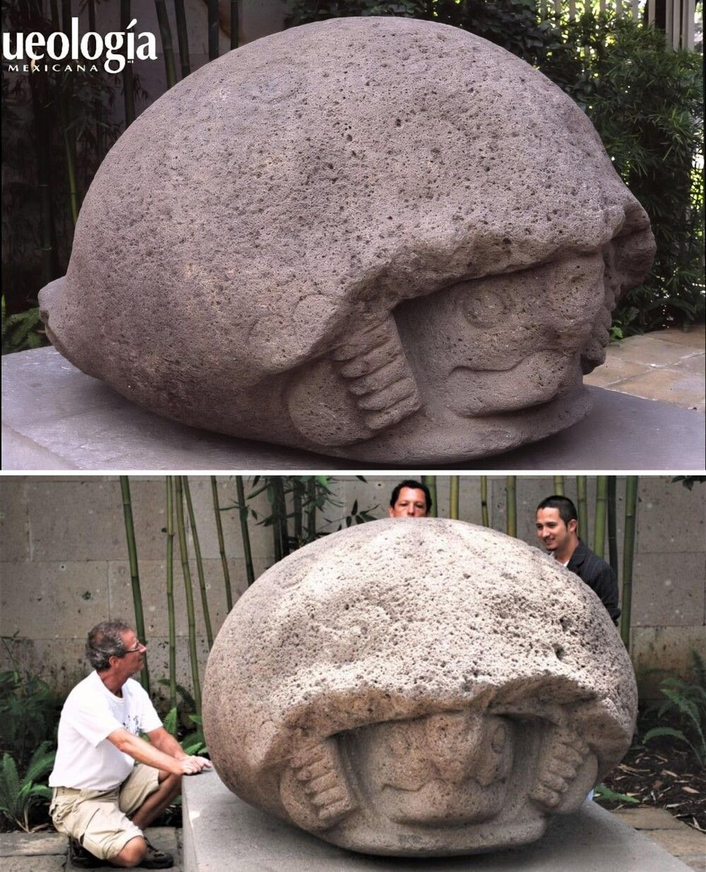 Черепаха занимала важное место в мезоамериканской мифологии, часто ассоциируясь с землёй, плодородием, водой и подземным миром. Эта монументальная базальтовая скульптура, созданная мастерами культуры Веракрус в постклассический период, демонстрирует характерный для региона стиль с тщательной проработкой деталей панциря и лап. Подобные крупные каменные изваяния могли выполнять ритуальную функцию или служить символами власти.