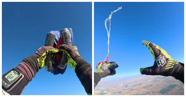 Парень решил проверить дешёвый парашют, заказанный с Amazon, во время прыжка с большой высоты. К счастью, запасной парашют сработал.