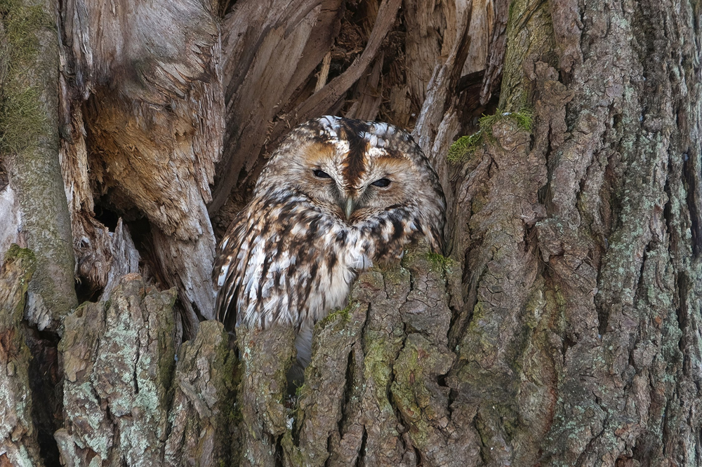 Вечно сидеть в убежище, подальше от разгневанной толпы, увы, не получится. Урчащий живот даст о себе знать, весьма неблагозвучно возвещая о том, что калории сами себя не добудут. Потому, дождавшись покрова мрака, сова выбирается на охоту. Главные ориентиры в мрачной чаще для неясыти - зрение и слух. Очаровательные глаза, в которых можно утонуть, занимают до 70% пространства от всего черепа! Но главное не размер, а форма. Глазное яблоко у сов скорее похоже на грушу. Такая конструкция помогает максимально увеличить размер и яркость изображения, попадающего на сетчатку в задней части глаза. Благодаря этому неясыти видят ночью в 2,5 раза лучше человека.