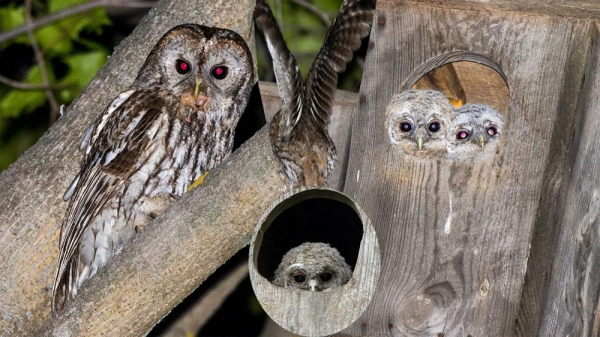 Неясыть влетает в чужое гнездо бесцеремонно и жёстко, словно грабитель. Результат очевиден - сова безжалостно набрасывается на спящих родителей, съедает их птенцов и скрывается в темноте ночи ещё до того, как все успели опомниться. А бывает, что и родители отправятся в ненасытное брюхо!