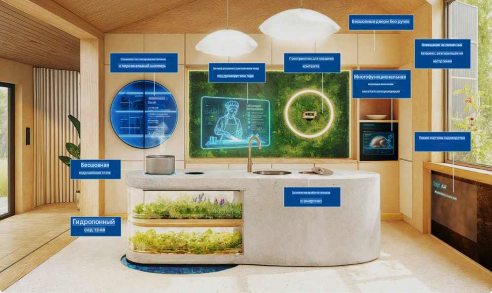 Чайник уступит место сенсорным кранам с мгновенным нагревом воды или улучшенной водопроводной системой, обеспечивающей кипяток прямо из крана. Кухни оснастят роботами-поварами на базе искусственного интеллекта, гидропонными садами для выращивания зелени без почвы, самоочищающимися поверхностями, солнечными панелями и даже встроенными студиями для создания контента в стиле TikTok.
