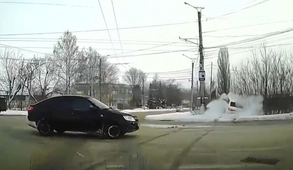 В Саранске на пересечении Александровского шоссе и улицы Лодыгина водитель автомобиля "Киа Рио" пытался уйти от столкновения с поворачивающей налево "Ладой" и вылетел в кювет.