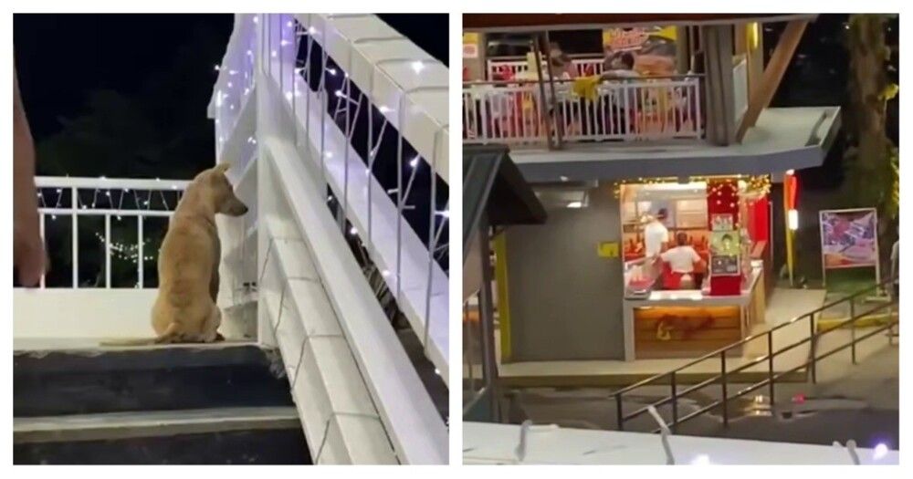 Автор пса заметил пса, который тоскливо глядел на ларёк с жареной курицей. Парень решил порадовать четвероногого друга человека.