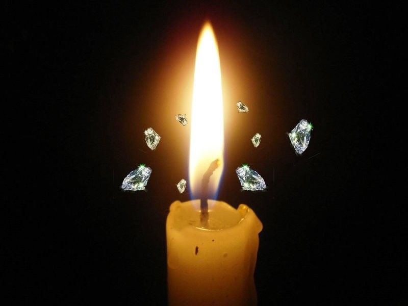 Согласно исследованию 2011 года, пламя свечи ежесекундно рождает около 1,5 млн наночастиц алмаза. Увидеть эти алмазы невозможно, так как размер каждого кристалла в среднем составляет около 0,003 микрона. В процессе горения алмазы быстро плавятся, превращаясь в углекислый газ, так что собрать "свечной" бриллиант не выйдет.