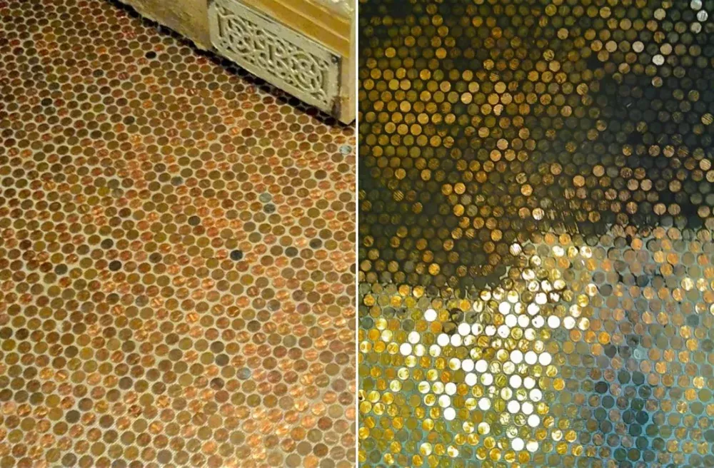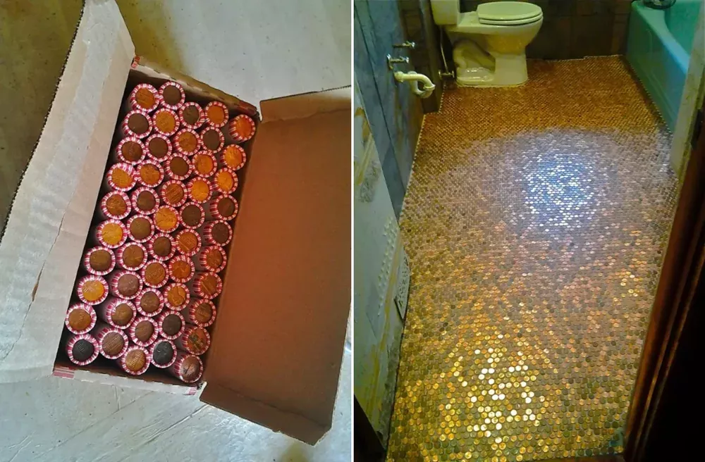 Иллюстратор из Флориды (США) Патрик Жируар заслужил похвалу за свои кропотливые усилия по облицовке пола в ванной комнате. Мужчина решил выделиться и использовал для этого монеты на сумму в 97 долларов.