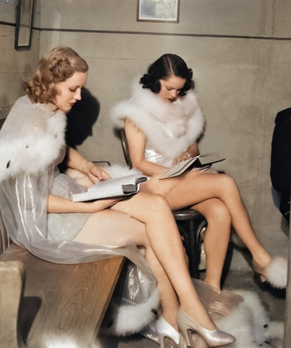 Хористки читают на съемках фильма "Нельзя иметь всё сразу", 1937 год.