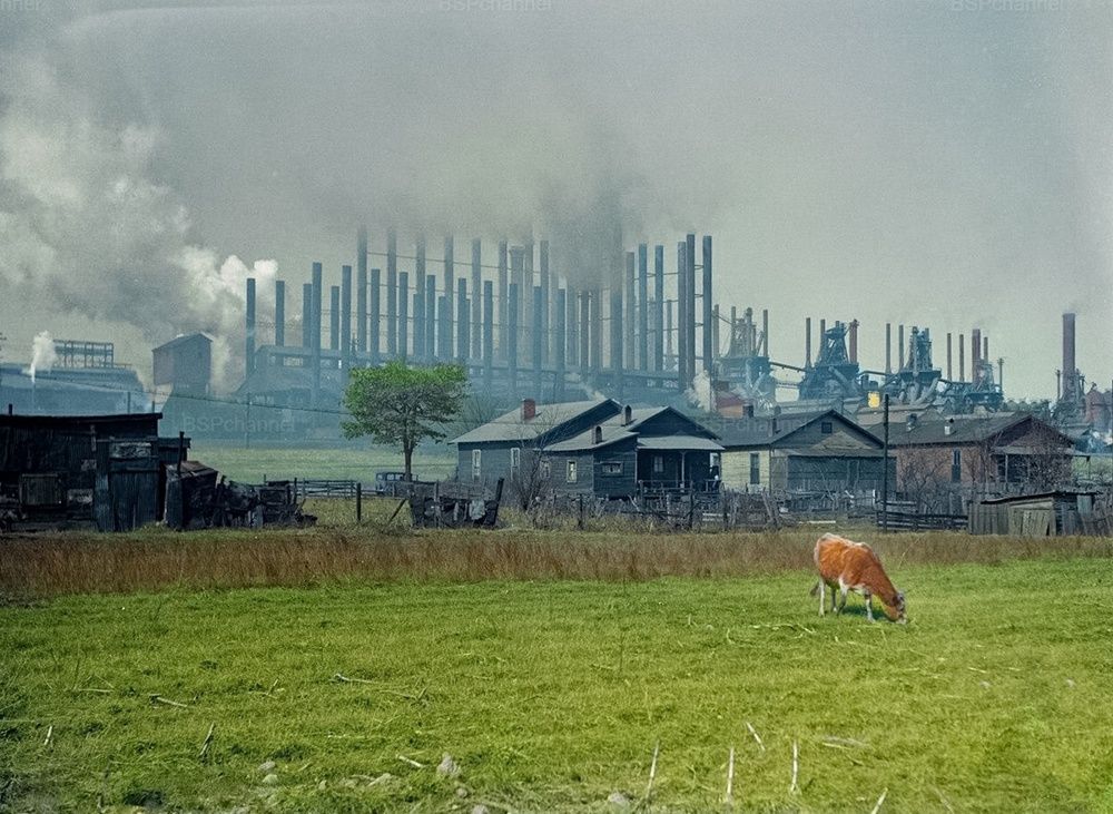 Дома местных жителей возле сталелитейного завода. Энсли, Алабама, США, 1937 год.