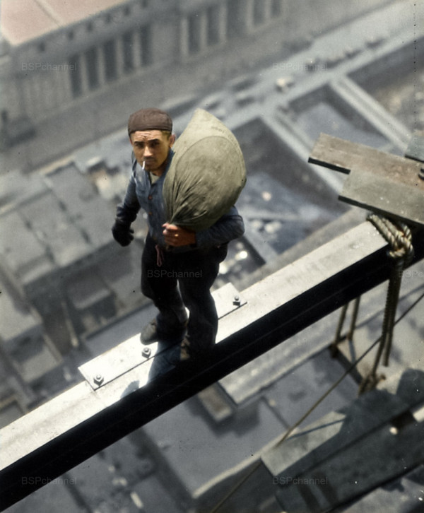 Рабочий посреди стальной балки во время строительства здания на Уолл-стрит. Нью-Йорк, 1930 год.