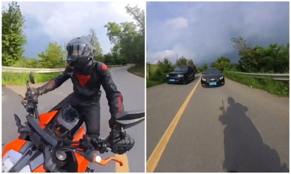 Камера 360' запечатлела ДТП мотоциклиста с автомобилем, который выехал на встречную полосу. Мотоциклист жив и здоров. Китай.
