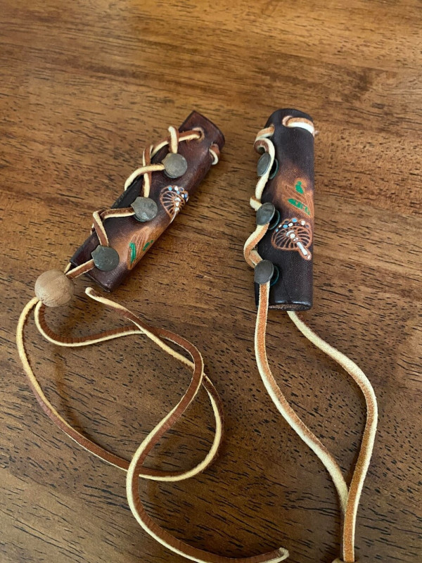 Чехлы для спиц. Резинка должна быть достаточно короткой, чтобы колпачки сидели плотно. Они предотвращают соскальзывание петель и удерживают спицы вместе в корзине для рукоделия. Их иногда называют колпачками Пунчинелло в честь итальянского клоуна Пульчинеллы (Pulcinello) - персонажа итальянского кукольного театра XVII века.