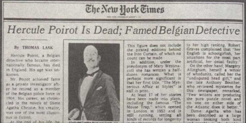 Она убила Пуаро, а затем спрятала рукопись в сейф. К концу 1930-х годов Кристи стала находить Пуаро "невыносимым", и в 1940 году она "убила" его в романе "Занавес". Убеждённая семьёй, друзьями и издателем не публиковать эту историю, писательница положила рукопись в сейф и продолжала писать о персонаже до 1975 года, когда роман, наконец, вышел. Эркюль Пуаро удостоился некролога в New York Times.