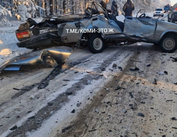 ДТП произошло на автодороге Нижний Одес - Ухта. Водитель автомобиля ВАЗ‑2107 при попытке обгона не справился с управлением, столкнулся с попутным УАЗом, после чего вылетел на встречную полосу, где столкнулся с автомобилем "Хавал". Все живы, но водитель и пассажир "семёрки" получили травмы.