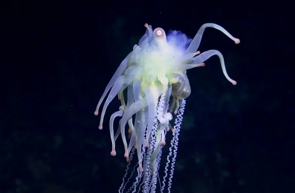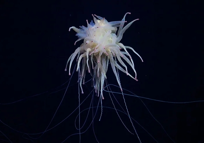 По бокам батифизы свисают тонкие длинные зооиды-спагетти, которые называются дактилозооиды. Это главные кормильцы: на них расположены сотни мелких стрекательных клеток-гарпунов с ядом, которые реагируют на малейшее движение. Их работа заключается в том, чтобы обнаружить, обездвижить и доставить добычу к центру колонии. Да, этот странный макаронный монстр - хищник! Но активной охоте он предпочитает просто свесить пучок дактилозооидов и ждать, пока рядом проплывёт хоть что-то съедобное. Рыбка, рачок, что угодно - на большой глубине выбирать не приходится.