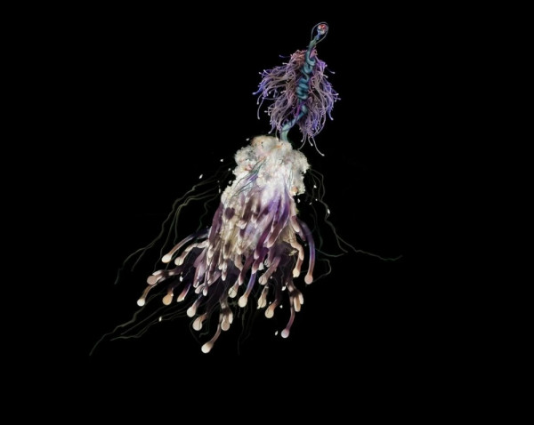 Дальше пойманная жертва попадает к клонам-гастрозооидам. Это столовая всей колонии. Поскольку ни один клон не способен к пищеварению, питательные вещества им поставляют гастрозооиды. Они переваривают пищу, разбирают её на питательные вещества и отправляют их к остальным зооидам. Самая вкусная работа! На краю колонии расположен клон-гонозооид, что отвечает за размножение батифизы. Причём клон бывает только одного определённого пола и, соответственно, вырабатывает либо семенной материал, либо яйцеклетки. По мере созревания половых продуктов они без всяких церемоний просто выбрасываются наружу в окружающую среду. Причём многие батифизы, живущие неподалёку, делают это почти синхронно. По всей видимости, есть какой-то определённый триггер для начала размножения - потепление воды, изменение течения, наличия феромонов, а может, и всё сразу. Поскольку наблюдают за макаронными монстрами разве что нефтянники да глубоководные аппараты, эта часть жизни колониального организма от нас пока что скрыта.