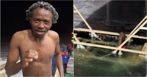 Эмоции на грани: чернокожий парень окунулся в прорубь